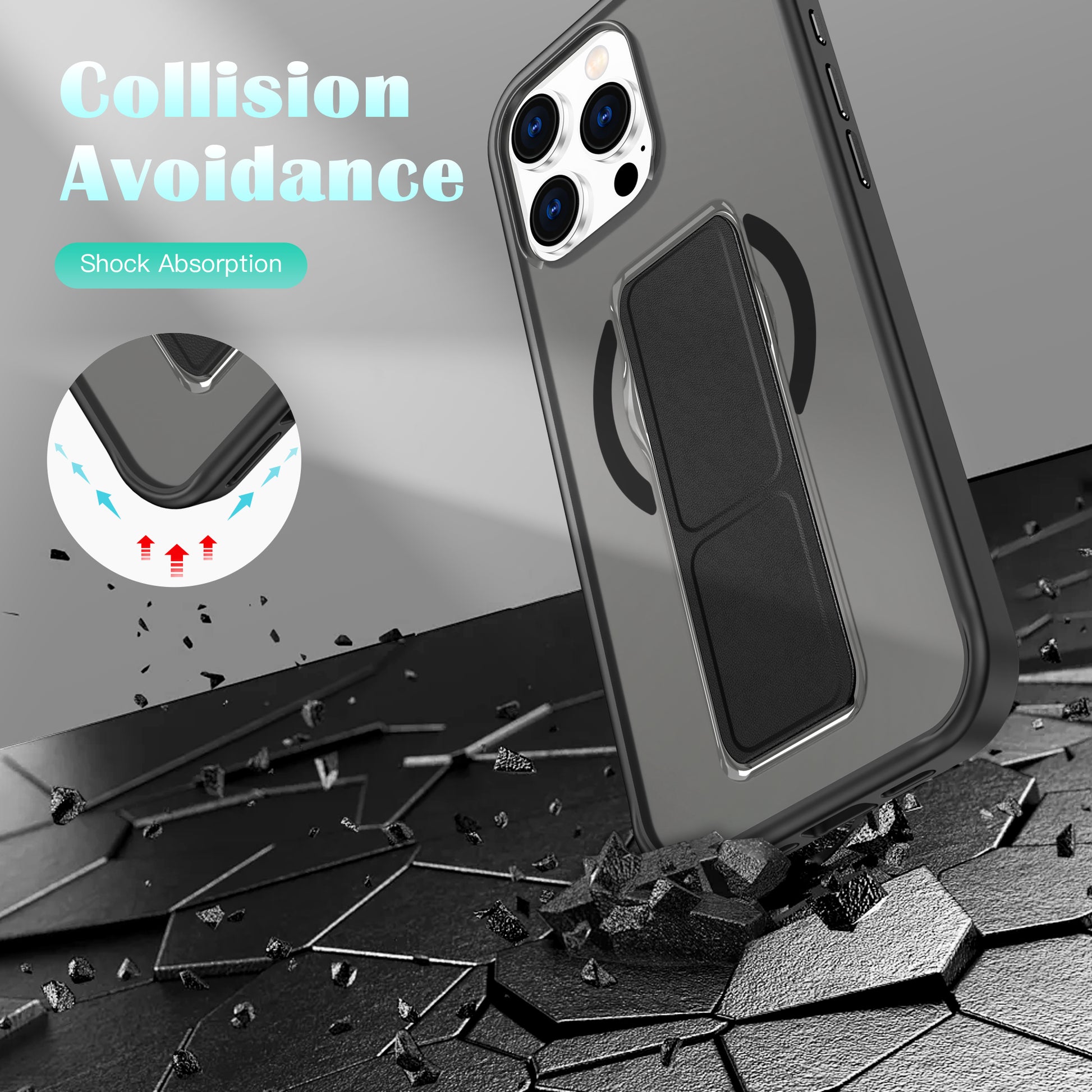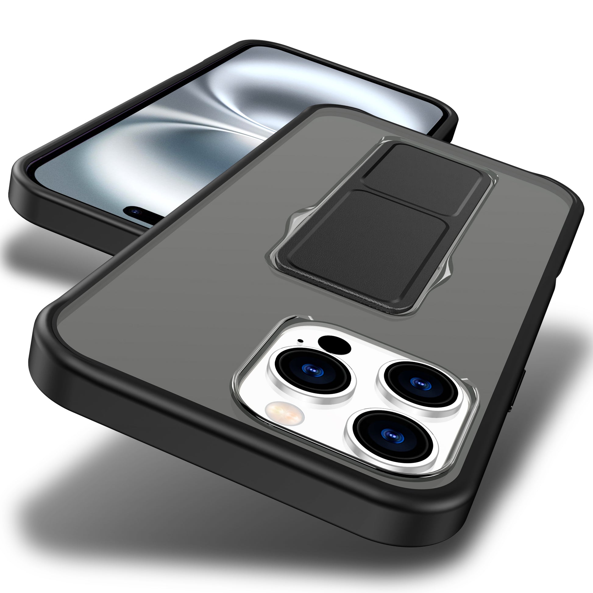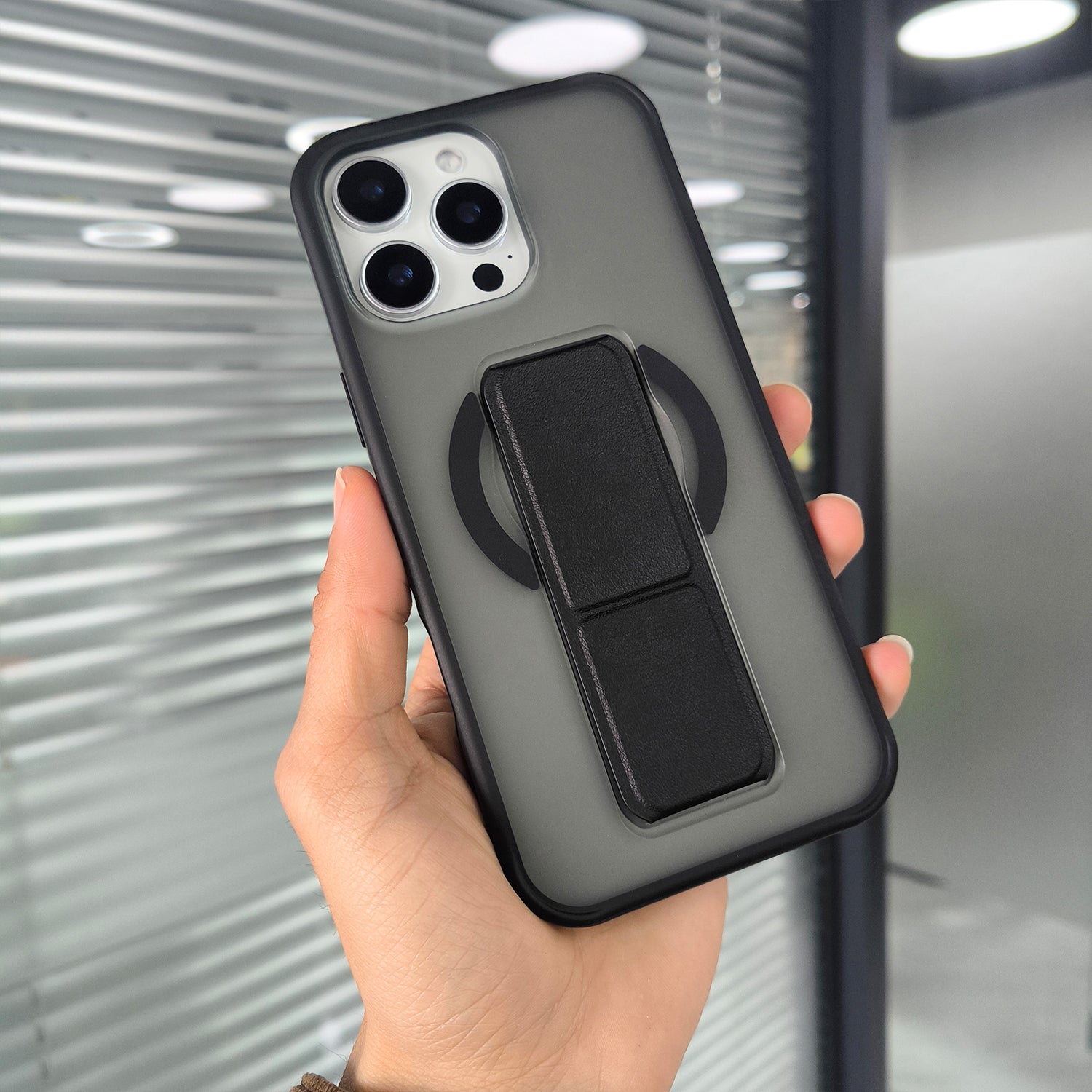 Esta funda protectora combina funcionalidad ergonómica y conveniencia moderna, ofreciendo un agarre seguro, una función de soporte manos libres y compatibilidad total con carga inalámbrica.